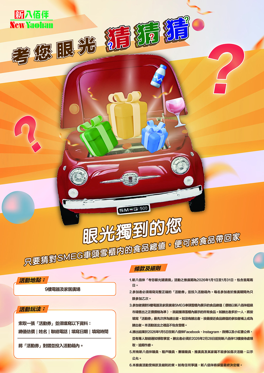 Jan Insight Challenge has started! Visit 9th floor of New Yaohan and guess the total value of the food in SMEG fridge correctly, you will be able to bring all the food home with you!